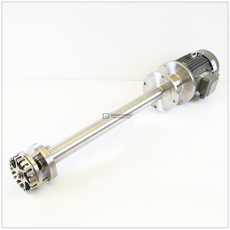剪切機頭采用爪式、雙向吸料結(jié)構(gòu),避免了上部物料難以吸入而造成的死角和漩渦現(xiàn)象,高速旋轉(zhuǎn)的轉(zhuǎn)子產(chǎn)生強勁的剪切力,使剪切率更高,剪切力更強。在轉(zhuǎn)子產(chǎn)生的離心力作用下,將物料從徑向甩入定、 轉(zhuǎn)子之間狹窄精密的間隙中,同時受到離心擠壓、撞擊等作用力,使物料得到充分分散、混合、乳化。