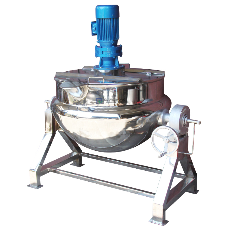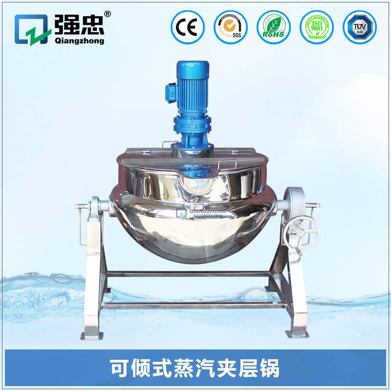 鍋體是由內(nèi)外球形鍋體組成的雙層結(jié)構(gòu)形式,中間夾層通入蒸汽加熱,有固定式、可傾式等樣式。夾層鍋已蒸氣為源,具有受熱面積大、熱效率高、加熱均勻、加熱時(shí)間短且溫度容易控制,物料攪拌形式采用刮底、刮邊、不粘鍋、無攪拌死角、攪拌均勻;鍋體內(nèi)外殼均為不銹鋼材料制造,符合衛(wèi)生安全要求、附件齊全、外形美觀、安裝及操作簡單方便、安全可靠。