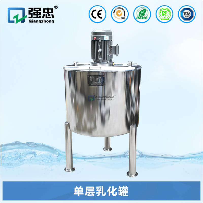 乳化罐是集混合、乳化、均質(zhì)、溶解、粉碎等功能與一體的設(shè)備,目前國內(nèi)食品、制藥、化工等行業(yè)最先進(jìn)的混合設(shè)備。乳化罐的作用是將一種或多種物料(水溶性固相、液相或膠狀物等)溶于另一種液相,并使其水合成為相對穩(wěn)定的乳化液。高速乳化頭工作時(shí)將轉(zhuǎn)子中心的物料高速拋向定子,通過定子的齒間隙,在轉(zhuǎn)子和定子之間通過剪切、碰撞、粉碎而達(dá)到乳化的目的,廣泛適用于油類、粉類、糖類等。原輔料的乳化混合,某些涂料、油漆乳化分散也使用乳化罐,尤其適用于某些難溶膠狀類添加劑,如CMC、黃原膠等。