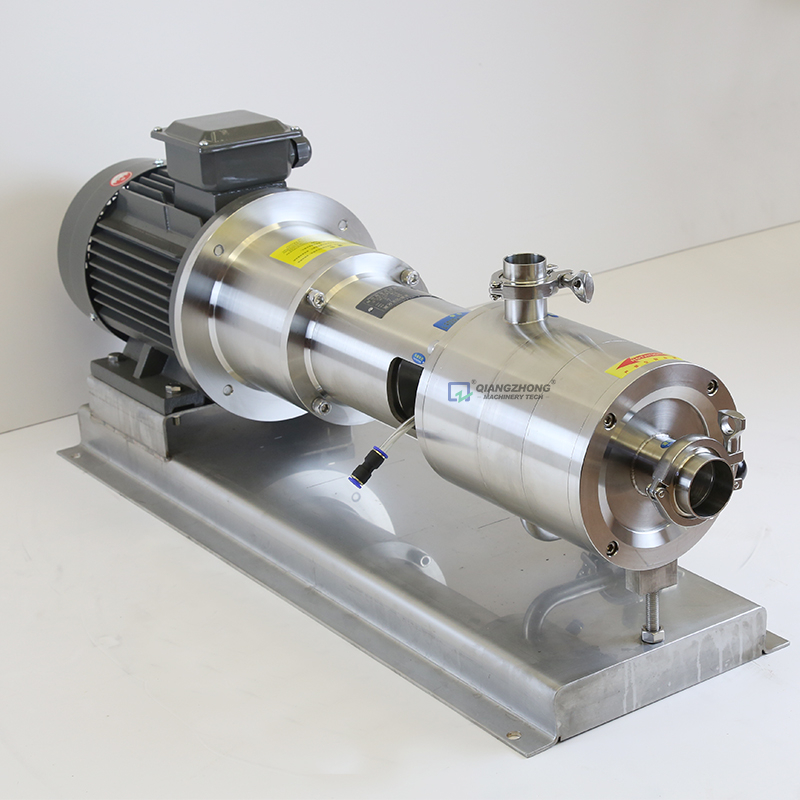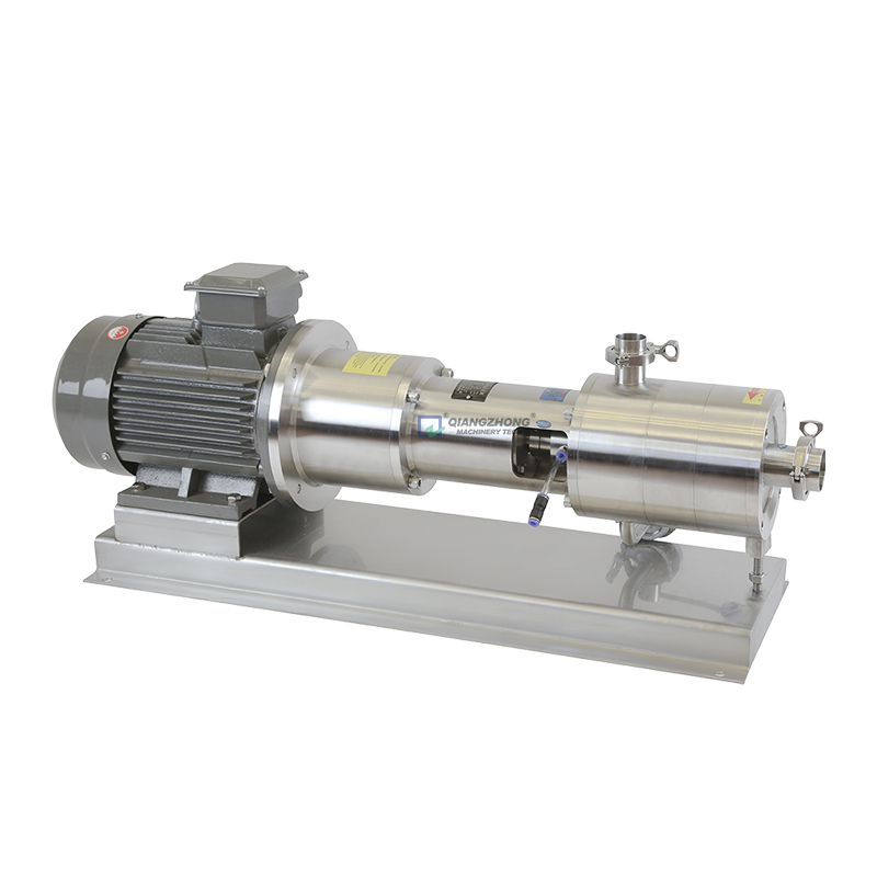 均質(zhì)乳化泵/管線式高剪切分散乳化機(jī)是一種集混合、分散、破碎、溶解、精細(xì)、解聚、均質(zhì)、乳化為一體的高效型混合精細(xì)的乳化設(shè)備,主要工作部件由定子和轉(zhuǎn)子組成。轉(zhuǎn)子快速運(yùn)轉(zhuǎn)產(chǎn)生離心力和液力等,定子保持不動(dòng)。通過轉(zhuǎn)子和定子的精密組合,在高速旋轉(zhuǎn)中產(chǎn)生強(qiáng)大的剪切力,對物料進(jìn)行強(qiáng)烈的剪切、離心擠壓、撞擊破裂、液層磨擦、湍流均勻等綜合作用。從而使不相溶的固相、液相、氣相等多種介質(zhì),在瞬間均勻精細(xì)、分散乳化。經(jīng)過往復(fù)循環(huán),最終得到穩(wěn)定的高品質(zhì)產(chǎn)品。