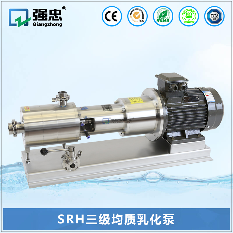 均質(zhì)乳化泵/管線式高剪切分散乳化機(jī)是高效、快速、均勻地將一個(gè)相或多個(gè)相分布到另一個(gè)連續(xù)相中,而在通常情況下各個(gè)相是互不相溶的。由于轉(zhuǎn)子高速旋轉(zhuǎn)所產(chǎn)生的高切線速度和高頻機(jī)械效應(yīng)帶來的強(qiáng)勁動(dòng)能,使物料在定、轉(zhuǎn)子狹窄的間隙中受到強(qiáng)烈的機(jī)械及液力剪切、離心擠壓、液層摩擦、撞擊撕裂和湍流等綜合作用,從而使不相溶的固相、液相、氣相在相應(yīng)成熟工藝和適量添加劑的共同作用下,瞬間均勻精細(xì)的分散乳化,經(jīng)過高頻的循環(huán)往復(fù),最終得到穩(wěn)定的高品質(zhì)產(chǎn)品。